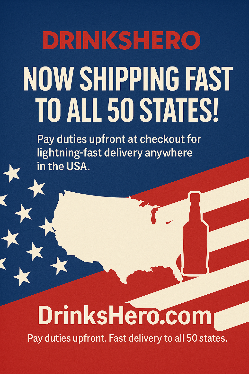 With DrinksHero.com, you can now pay duties at checkout — meaning your order clears customs seamlessly for super-fast delivery straight to your door, anywhere in America.