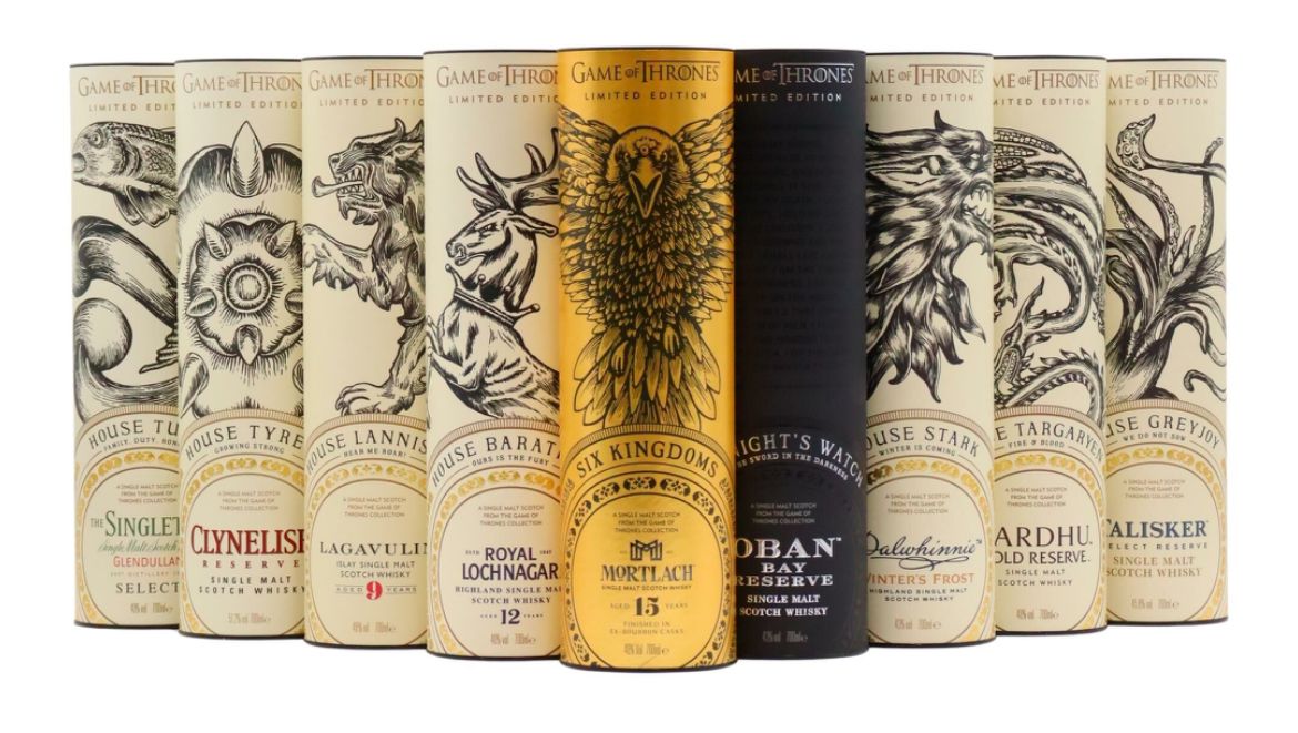 A great opportunity to collect all 9 bottles being released as part of the build up to the 8th and final season of HBO’s Game of Thrones series, which aired April 14th 2019. In collaboration with Diageo, 9 iconic, limited release single malts have been paired with the 7 kingdoms of Westeros and the Night’s Watch, to create a truly unique collection that’s a must for series fans and serious collectors alike.